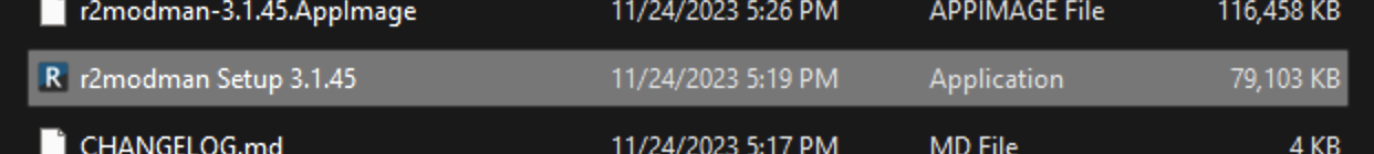 Inside the folder, double click "r2modman Setup 3.1.4.5", the one with the blue icon to its left. The installer will walk you through the installation. At the end of the installation the mod manager should run.