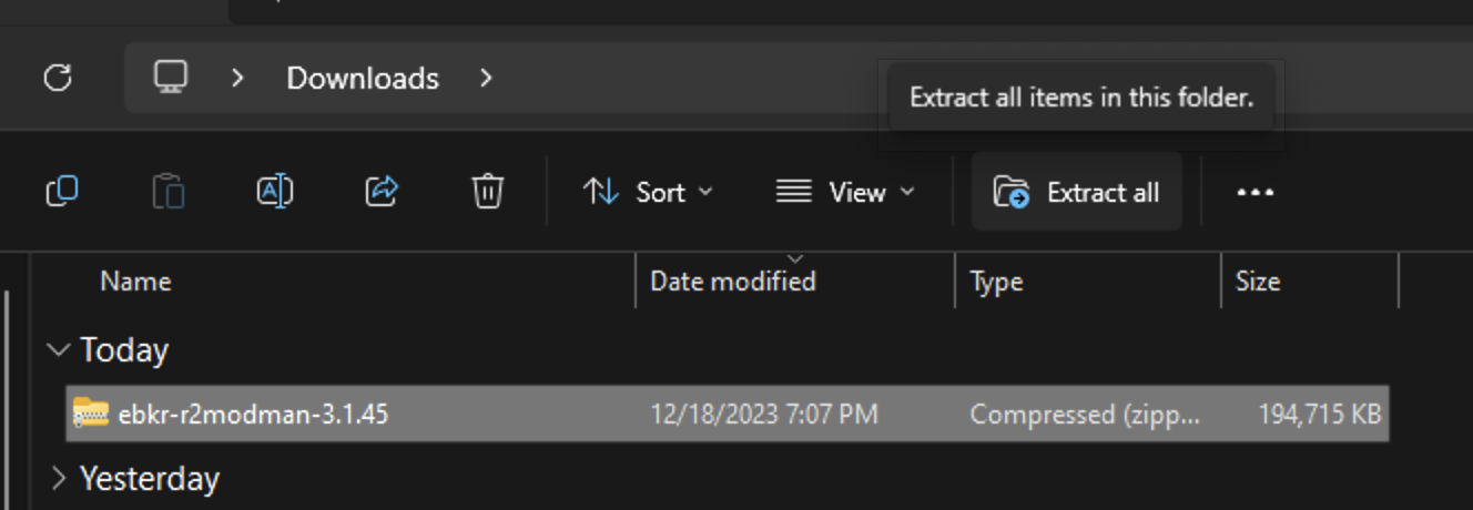 On the Steam Deck, the above steps must be done in desktop mode with a few differences. After you extract the .zip with Ark, you want to double click "r2modman-3.1.4.5.Appimage" to run it. This file won't install the mod manager; It *is* the mod manager. Maybe tuck it away somewhere safe on your desktop, because every time you want to run r2 mod manager, you'll have to navigate to this file.