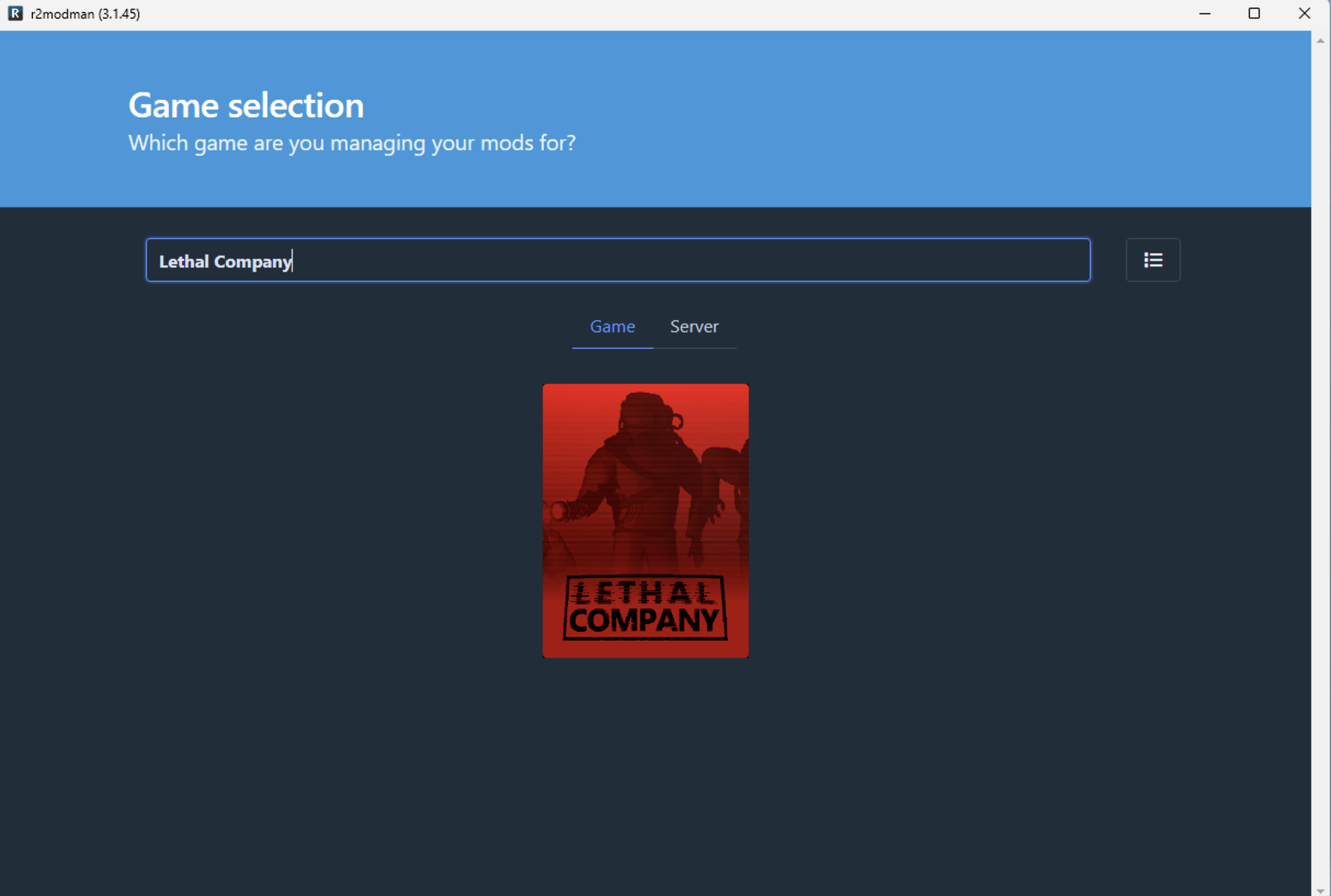 You'll be prompted to find the game you want to mod. Search "Lethal Company" until you see it and then select it. Choose Select Game.