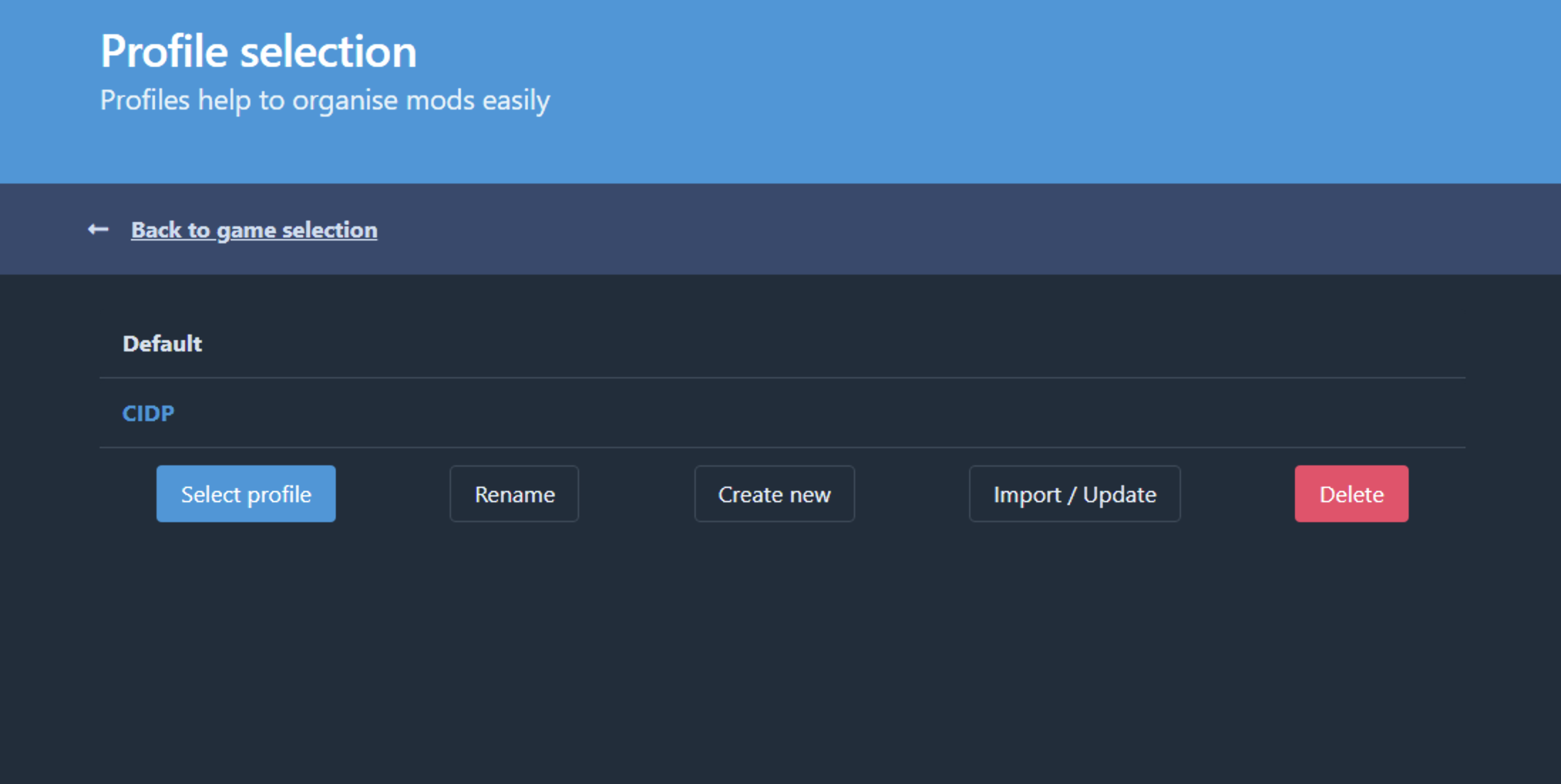 You should now see two profiles, Default and CIDP. Make sure "CIDP" is highlighted blue and press "Select Profile."