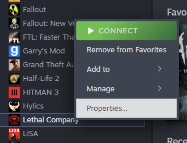 If you would rather launch the game from steam than have to go through the mod manager, you can do that too. In your steam library, right click the game and mouse down to Properties...